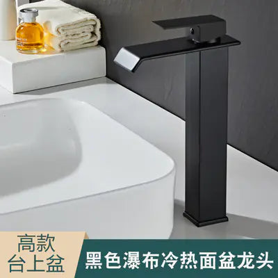 Vierkante watervalkraan voor badkamerwastafel (zwart/goud)